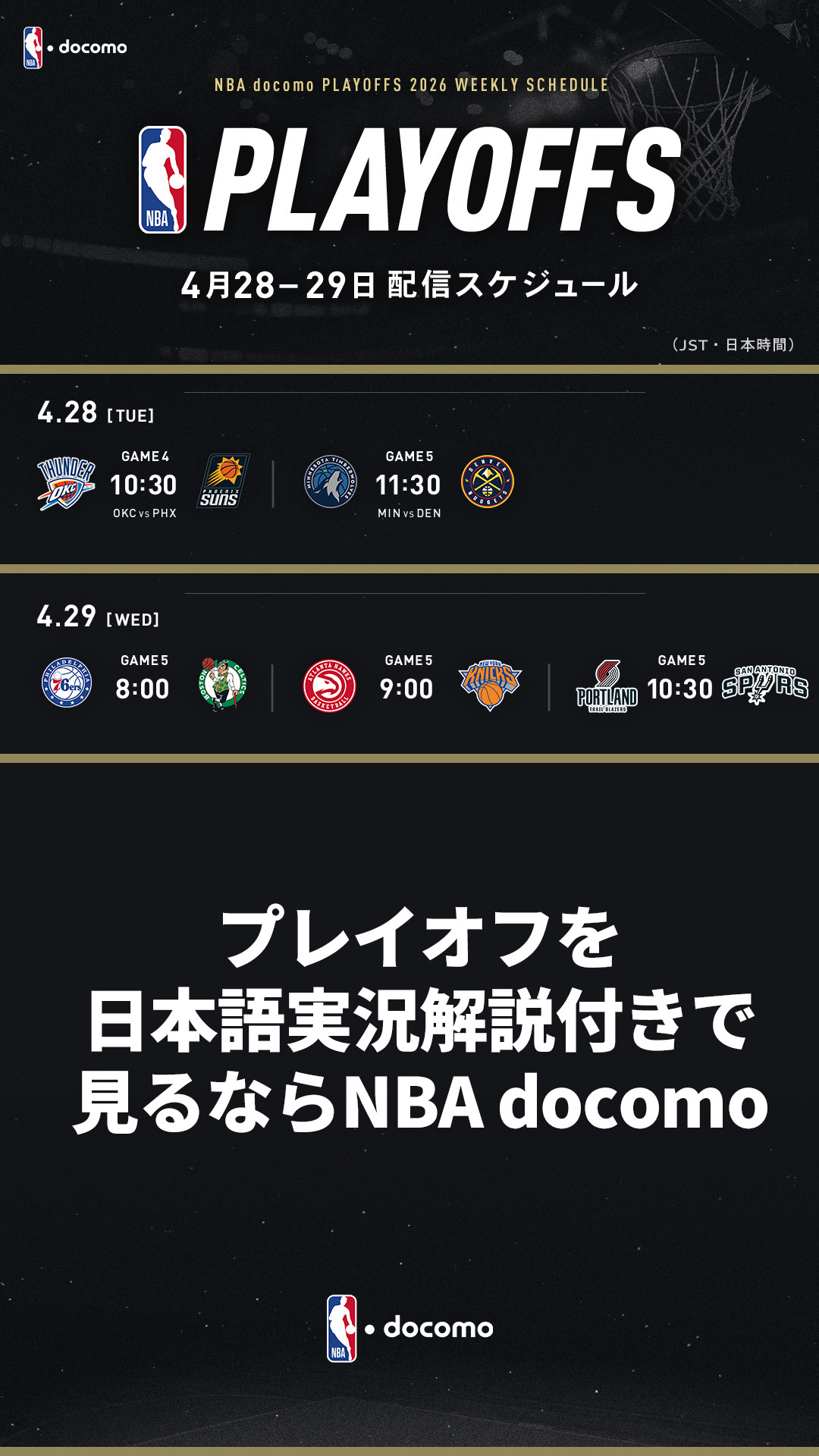 ▼1stラウンド注目のカードをNBA docomoにて日本語・実況解説付きで中継!