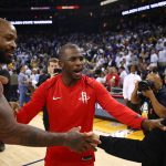 ほとんどのロケッツの選手の姿が消えた時、審判からシュートがノーカウントであることを告げられた。するとジェームズ・ハーデンが走ってコートに戻り、CP3ことクリス・ポールらが続いてコートで抱き合った。