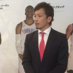 中継が終わり、囲み取材に応じた松田選手。初めてフルでNBAのゲームを観戦したとのことだが、「運動能力の高さにびっくりしました。しかも、1試合を通じてパフォーマンスが落ちないのは驚きです。NBAの選手はハードなトレーニングをすると聞いていますが、それだけしないとスタミナがもたないですよね」と、驚きを隠さなかった。