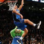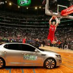2014年、ボールを上に掲げたマスコットを跳び越し、そのままリバースダンク。決めた直後に見せた小気味よい踊り“ウォール・ダンス”も印象的だった。