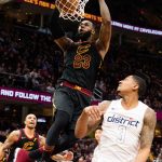 第4クォーター、レブロンがこの日挙げた32得点のうち14得点を同クォーターだけで挙げるなど追い上げを見せたものの、最後はウィザーズが110-103で逃げ切り3連勝。ウォール離脱後は8勝2敗となった。
