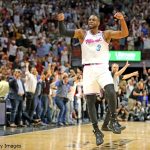 現地時間2/27のシクサーズ戦で決勝弾を決めたウェイド[写真]=Getty Images