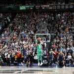 現地時間3/28のジャズ戦は、試合終了間際にブラウンが値千金の3ポイントを決めて劇的勝利[写真]=Getty Images