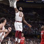 29日(同28日)に行われたシャーロット・ホーネッツ戦で41得点を挙げ、連続2ケタ得点試合数で歴代1位のマイケル・ジョーダン(元シカゴ・ブルズほか)に並ぶ866を記録していたレブロン・ジェームズは、最初のフィールドゴールをダンクで決めると、第1クォーター残り約6分、豪快なボースハンドダンクで11得点目を奪い、早々に867試合という史上最長記録を樹立。
