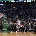 セルティックスはホーフォードが踏ん張り、試合終盤まで何とか3点差をキープしたものの、残り11.1秒にブログドンの長距離砲が決まって96-96、バックスがとうとう追いついた。するとセルティックスはお返しとばかりにロジアーがステップバックでほぼノーマークを作り出し、3ポイントシュートをヒット。残り0.5秒で99-96と3点のリードを奪ってみせた。