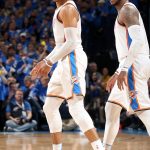 ウェストブルック(左)とカーメロ(右)も活躍し、好スタートを切ったサンダー[写真]=Getty Images
