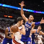 第3クォーター。シモンズがジャンパーやレイアップで加点し、シクサーズが追い上げを図るも、ヒートはドラギッチやハッサン・ホワイトサイドのショットでリードを広げ、残り6分53秒でリードを12点(74-62)とした。