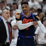 早くも窮地に追い込まれたサンダー。ウェストブルック(右)とドノバンHC(左)は形勢逆転に持ち込むことができるのか?[写真]=Getty Images