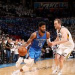 勝利したサンダーではウェストブルックが5本の3ポイントシュート成功を含むゲームハイの45得点、リバウンドも両チームトップとなる15本、さらに7アシストを記録。ジョージも34得点8リバウンドと奮起し、1回戦敗退を回避。