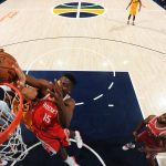 ジャズはミッチェルが25得点9リバウンド4スティール、イングルズが15得点8リバウンド4アシスト、ゴベアが11得点10リバウンド3ブロックを挙げたものの、ロケッツのディフェンスの前にフィールドゴール成功率38.6パーセントと苦しんだ。