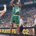 一方のセルティックスは、01年途中に就任したジム・オブライエンHCの下、ポール・ピアースとアントワン・ウォーカー(共に元セルティックスほか)を中心に、リーグ2位の被フィールドゴール成功率(42.5パーセント)、リーグ9位の平均失点(94.1失点)を誇るディフェンスを武器に、リーグ最多の試投数(平均23.7本)を記録する3ポイントシュートを多用するチームとして台頭。イースト3位となる49勝33敗を挙げ、堂々イースト決勝までたどり着いた。