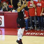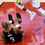 だが、ロケッツにとって懸念材料なのは、ここ2試合で見事な活躍を見せていたクリス・ポールが右ハムストリングの負傷により第6戦に欠場することだろう。ポールは第5戦終盤に同箇所を痛めてしまい、勝利の瞬間をベンチから見守っていた。