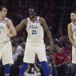 シクサーズの先発を務めるヤングコア(左からシャリッチ、エンビード、シモンズ)[写真]=Getty Images
