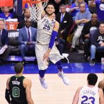 3ポイントこそないものの、サイズを活かしたドライブを軸に豪快なダンクでも沸かせたシモンズ[写真]=Getty Images