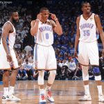 サンダー(またはソニックス)でNBAキャリアをスタートさせたデュラント(右)、ウェストブルック(中央)、ハーデン(左)は、いずれもMVPを獲得[写真]=Getty Images