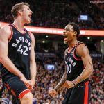 昨季イーストトップの59勝を挙げたラプターズのデローザン(右)とポートル(左)がスパーズへ移籍[写真]=Getty Images