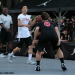 そして、ラストを飾ったのはメインイベントの7分前後半で行われたエキシビションマッチ。 日本のストリートバスケ界が誇る最大の5ON5トーナメント『ALLDAY』から選抜されたALLDAY ALLSTARと、ウェストブルックが監督となり、Bリーグで活躍するナイキアスリートを中心に構成されたTEAM WHY NOT?との夢の対決が実現した。TEAM WHY NOT?はアイラ・ブラウン、古川孝敏(ともに琉球ゴールデンキングス)、竹内公輔、 田臥勇太(ともに栃木ブレックス)、岡本飛竜(広島ドラゴンフライズ)、富樫勇樹(千葉ジェッツ)、3x3を中心に活動する落合知也(越谷アルファーズ)という豪華メンバーで臨んだが、試合はALLDAY ALLSTARが終始主導権を握った。