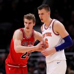 今年2月に負った左膝前十字じん帯の大ケガにより、今季途中の復帰が予想されるニックスのポルジンギス(右)と2年目を迎えるブルズのマルッカネン(左)[写真]=Getty Images