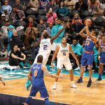 現地時間3月26日のホーネッツ戦。敗れはしたものの、バークはキャリアハイの42得点をたたき出した[写真]=Getty Images