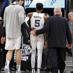一方のスパーズでは、デマー・デローザンが両チームトップの22得点に5アシスト2スティール2ブロック、ルディ・ゲイが13得点6リバウンド、マルコ・ベリネリが11得点、ラマーカス・オルドリッジが10得点7リバウンド。この日のスパーズにとって、敗戦よりもショックだったのは、先発ポイントガードを務めるデジャンテ・マレーの負傷だろう。第2クォーター途中に右膝を痛めてしまい、コートから去ってしまったからだ。リーグの情報筋によると、マレーは9日(同8日)にMRI検査を受けることになるという。
