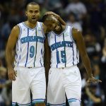 第4クォーターに猛反撃を遂行したホーネッツ。パーカー(左)はウォーカー(右)らと共にプレーした[写真]=Getty Images
