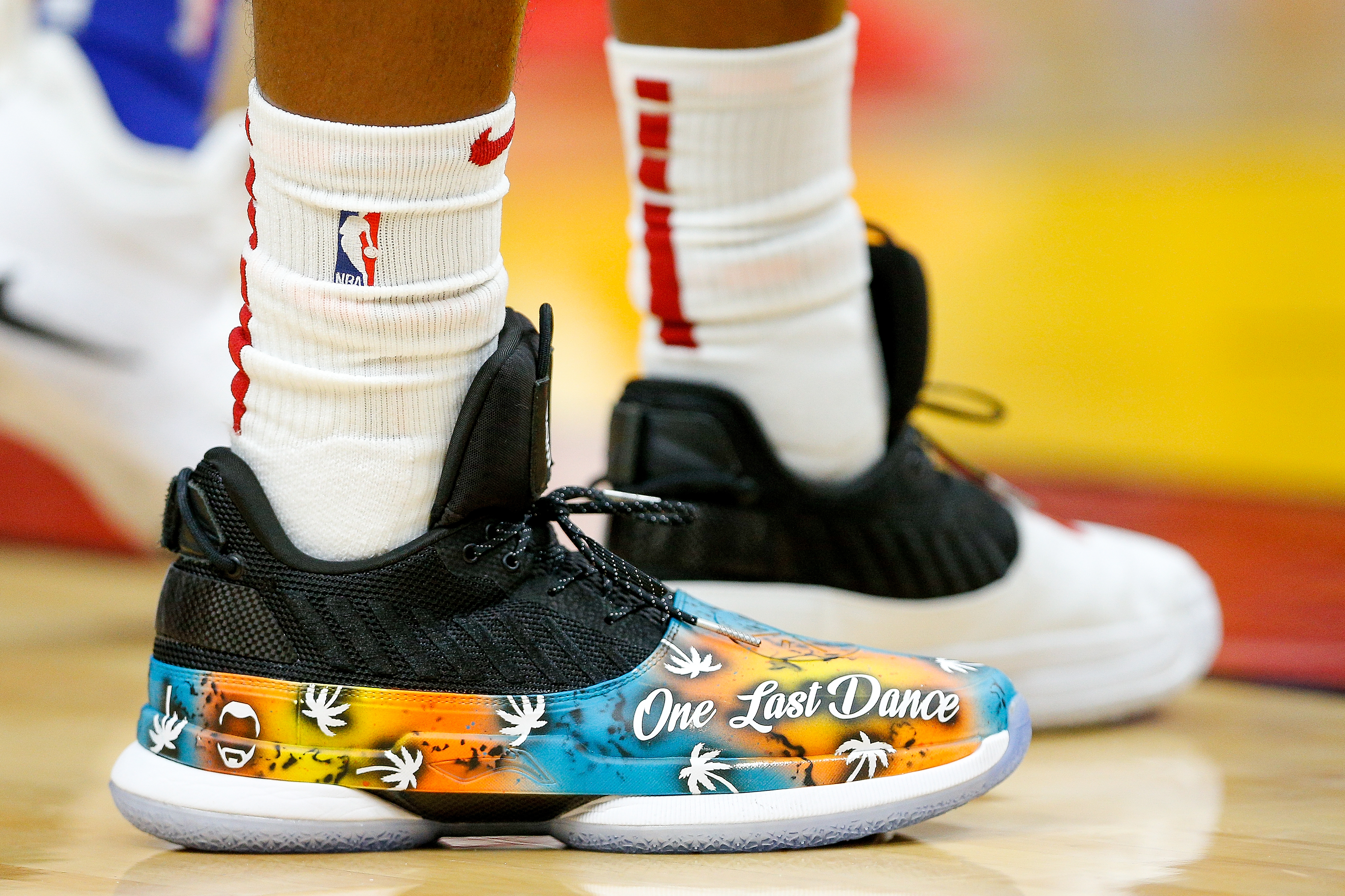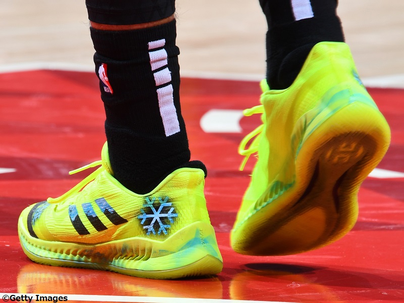 LOS ANGELES, CA - OCTOBER 20: the sneakers of Josh Hart #3 of the Los Angeles Lakers are seen against the Houston Rockets on October 20, 2018 at STAPLES Center in Los Angeles, California. NOTE TO USER: User expressly acknowledges and agrees that, by downloading and/or using this Photograph, user is consenting to the terms and conditions of the Getty Images License Agreement. Mandatory Copyright Notice: Copyright 2018 NBAE (Photo by Andrew D. Bernstein/NBAE via Getty Images)