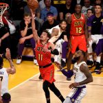 残り15.3秒に1点をリードしたレイカーズ。ホークスは逆転を懸けてヤングがドライブからレイアップを放ったものの、大ベテランのタイソン・チャンドラーが値千金のブロックを決めて劇的勝利。最終スコア107-106とし、今季初の3連勝を飾った。