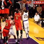 粘るホークスは残り1分21秒にヤングのアシストでカーターがダンクをたたき込み、106-105で1点をリード。レイカーズはレブロンが残り19.9秒で得たフリースローを2本とも落としてしまい、窮地に陥ってしまう。