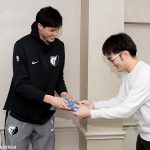 ハッスル戦の後、センターサークルで記念写真 。後列中央がインタビューに応じてくれた渡邊大輝さん[写真]=Yasushi KOBAYASHI