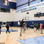 GリーグのアリーナはFedExフォーラムに比べれば小さく、働いているスタッフもボランティアが中心。それだけに温かみのあるコミュニケーションが親近感を誘ってくれる。観客席に着いた時にはすでに試合前の練習がスタートしていた。もちろん一行の視線の先には前日に交流会に参加してくれた渡邊選手であることは間違いない。チームの粋な計らいによりコート最前列での観戦となり、ティップオフの時を待つこととなった。