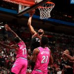 『NBA History』によると、スティールとブロックが記録されるようになった1973-74シーズン以降、1試合で34得点18リバウンド7アシスト3スティール6ブロックを達成した選手は皆無。ヒート戦で見せたタウンズが初という、きわめてレアな数字を残したのである。