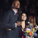 妻であるシャノン・ウォーカー・ウィリアムズ(右)ら家族と共に式典へ登場したアレン(左)[写真]=Getty Images