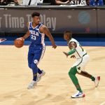 セルティックス相手に今季ようやく勝利を飾ったシクサーズ。特にエンビードは強烈なインパクトを与えることとなった[写真]=Getty Images