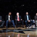 (左から)ビュフォードGM、ダンカン、ポポヴィッチHC、オベルト、パーカーらがスピーチを行った[写真]=Getty Images