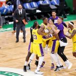 この日のレイカーズはレブロン・ジェームズがゲームハイの27得点に9アシスト、ケンテイビアス・コールドウェル・ポープが6本の3ポイント成功を含む25得点、カイル・クーズマが20得点を挙げるなど、計6選手が2ケタ得点を奪取。