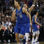 ノビツキー(前方)とドンチッチ(後方)の活躍で今季最後のホームゲームを制したマブス[写真]=Getty Images