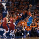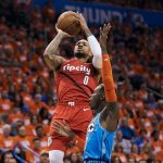 マッカラムのフローターで残り8分50秒にブレイザーズが2点差まで追い上げると、ジェレミー・グラントがいずれもウェストブルックのアシストから3ポイントとレイアップを決め切って残り8分7秒でサンダーが7点をリード。その後はサンダーが5点差以上をキープし、120-108でブレイザーズからシリーズ初勝利を挙げた。