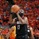 ジャズとのシリーズで、両チームトップの平均27.8得点をマークしたハーデン[写真]=Getty Images