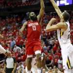 ジャズとのシリーズでもフローターを効果的に決めたハーデン[写真]=Getty Images