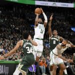 1勝1敗で並ぶ両チームによる第3戦は、同点13回、リードチェンジ15回を数えたものの、第4クォーター終盤まで2ケタ点差をキープしたバックスが123-116でセルティックスを振り切り、シリーズ2連勝を飾った。