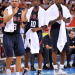 アメリカ代表の一員としてプレーしたキッド(左)とレブロン(右)[写真]=Getty Images