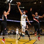 現在は3連覇をかけてウエスト決勝を戦うカリー。ウォリアーズは初戦を制して第2戦を迎えることとなる[写真]=Getty Images