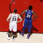 ガソル(左)と激しいマッチアップを繰り広げたエンビード(右)[写真]=Getty Images
