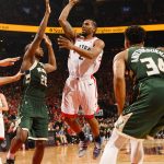 第4クォーター残り7秒。ラプターズは2点リードしていたものの、クリス・ミドルトンがショットをミスするも、自らオフェンシブ・リバウンドをもぎ取り、延長へと持ち込む貴重なショットを沈めた。