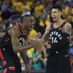 するとラプターズはバンブリート、レナードが加点してリードを取り戻すと、ダニー・グリーンが2本連続で3ポイントを放り込み、突き放しにかかる。第3クォーター終了間際にクックがショットを沈めるも、ラプターズ13点リードで最終クォーターへ。