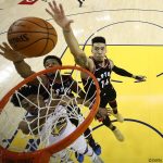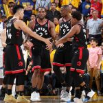 ウォリアーズはケビン・デュラント(右ふくらはぎの肉離れ)とクレイ・トンプソン(左ハムストリングの負傷)を欠いていたものの、ラプターズはアウェーのオラクル・アリーナで記録的なシューティングショーを開演。