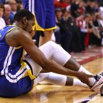 第2クォーターは開始2分14秒、ウォリアーズにアクシデント発生。約12分間の出場で11得点2リバウンド1ブロックを挙げていたデュラントが、1対1を仕掛けた際に右足を痛め、チームメートの肩を借りながらロッカールームへ下がった。リーグ屈指のスコアラーを失ったウォリアーズだったが、同3分48秒にデマーカス・カズンズの3ポイントで46-35と点差を2ケタに。