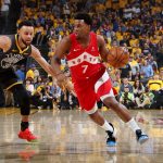 試合序盤はカイル・ラウリーのスコアリングショーが開演。ドライブからレイアップを決めて先取点を挙げると、3本連続で3ポイントを放り込み、開始からわずか2分16秒で11得点。『Elias Sports Bureau』によると、NBAファイナル史上、最速で2ケタ得点を挙げた選手に。