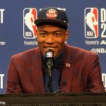 NBAのアダム・シルバーコミッショナーから名前を読み上げられた瞬間、八村塁(ゴンザガ大学)は人差し指で天を指し、日本からやってきた家族と喜びを分かち合った。壇上でシルバーコミッショナーにドラフト用のワシントン・ウィザーズ用のキャップをかぶらせてもらい握手を交わし、ESPNをはじめとするアメリカのテレビ局によるインタビューを終えた後、八村は記者会見場に到着。メディア対応を行ったのだが、明らかに表情が柔らかくなった印象を受けた。