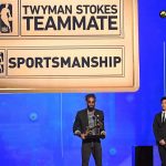 新天地ジャズの指揮官クイン・スナイダーが見守る中、2部門を受賞したコンリー[写真]=Getty Images